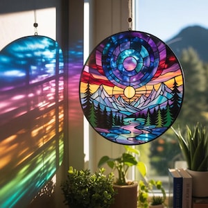 Moon Suncatcher Night Sky Window Hanging Moonlight Lake Landscape Sun Catcher Celestial Home Decor Gift