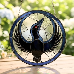 Rebel Loon Stained Glass Suncatcher, Minnesota Bird Window Hanging, Natural Wall Decor