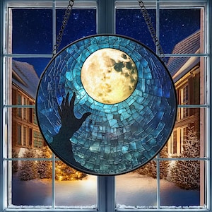 Full Moon Stained Glass Suncatcher: Celestial Window Art Decor