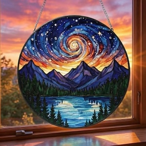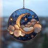 Cat On Crescent Moon With Stars Faux Acrylic Suncatcher Window Hanging – Celestial Night Sky Decor Gift For Cat Lovers