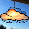 Crescent Moon Stained Glass Suncatcher, Stars Clouds Celestial Hanging, Night Sky Window Ornament, For Astronomy Hobby Enthusiasts Decor.